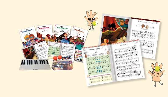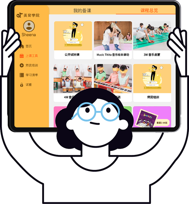 教材具备舞蹈、季节、图画、戏剧、文学。用听、说、唱、跳、玩的律动方式快乐成长!课程搭配专为幼儿园设计的课本,包含美学与音乐一并学习。